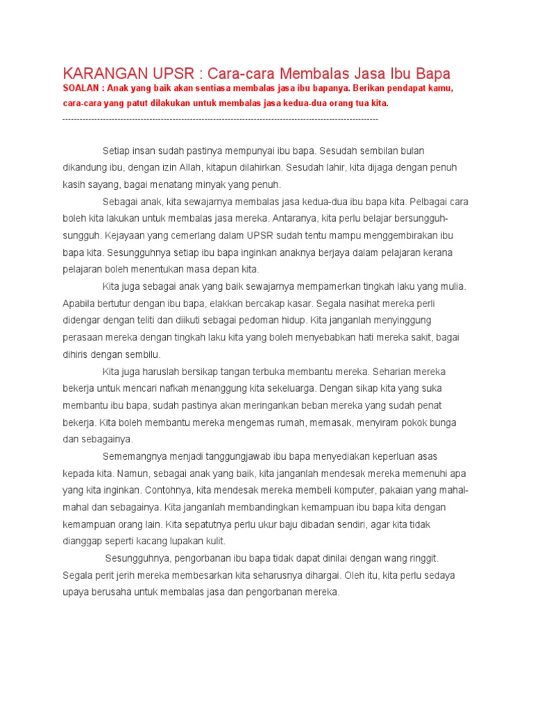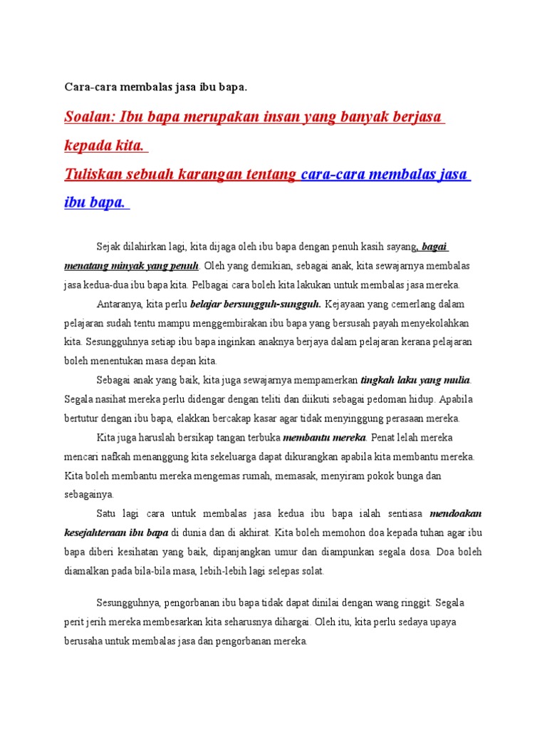 Karangan Cara Cara Membalas Jasa Ibu Bapa / Seperti yang kita ketahui, apabila seseorang telah lanjut usianya pasti perangai keanak.