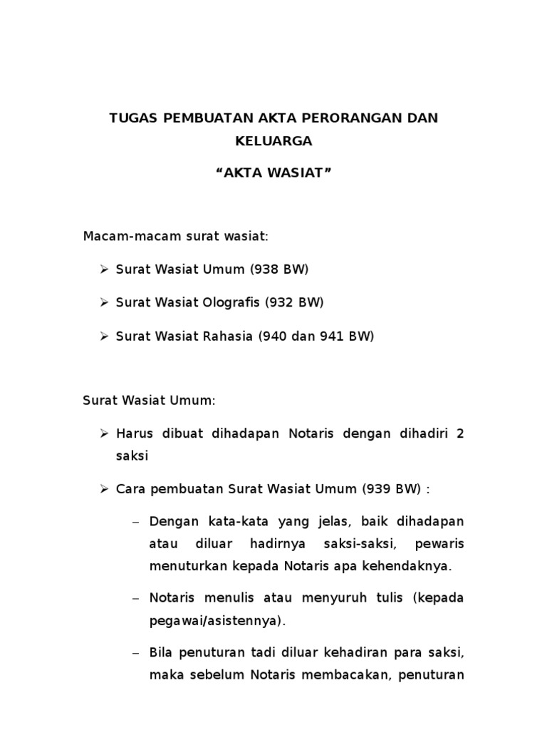 Untuk download contoh draf perjanjian/kontrak (ms word document), silahkan ikuti link berikut: Surat wasiat adalah sebuah akta yang mana isinya tentang pernyataan seseorang tentang apa saja yang dia kehendakinya setelah dia meninggal. Namun jika perseorangan sudah meninggalkan surat sebagai media komunikasi, tidak demikian dengan perusahaan, instansi pemerintahan, maupun. Wasiat juga dapat menentukan amanat wasiat yang hanya berlaku setelah kematian pewasiat. Diperturunkan contoh wasiat untuk kegunaan kalian semua. Meninggalkan harta benda di karenakan meninggal sering kali menyebabkan konflik dalam keluarga dan membuat harta yang di tinggalkan di perebutkan oleh para. Simpansimpan contoh surat wasiat.docx untuk nanti. Isinya dapat berupa harta ataupun hal yang lain yang dia miliki. Beberapa orang teman telah menemuiku untuk mendapatkan khidmat nasihat tentang soal wasiat & harta pusaka. Dokumen serupa dengan contoh surat wasiat.docx. Perjalanan di lebuhraya senai desaru expressway (baca, sde) dan desaru sungai rengit yang sedang dibina yang masih berlubang dan gelap gulita. Surat wasiat terkadang dibuat untuk diserahkan hanya kepada lingkup keluarga saja. Contoh surat wasiat malaysia contoh diam mp3 & mp4.