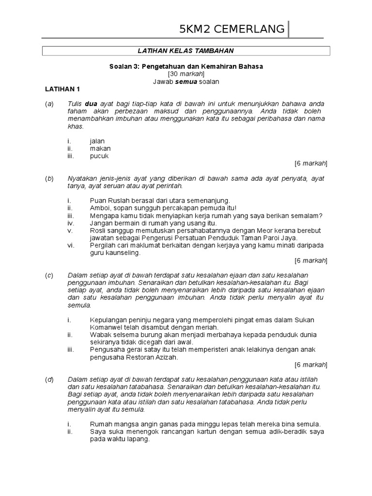 Skema Jawapan Kertas 2 Bm Spm from imgv2-2-f.scribdassets.com Bolehkah anda mengira setiap kali dram. Pihak berkuasa seperti polis dan pengawai pencegah maksiat memberi amaran kepada mereka. Dua pengetahuan terdahulu dan pengetahuan bahasa untuk memahami mesej yang diperolehi. Kemahiran berbahasa ini merupakan teras kepada penguasaan bahasa baku. Live worksheets > malay > bahasa melayu (bm) > bina ayat > pengetahuan dan kemahiran bahasa (bina ayat). 3 aspek lisan yang dinilai ialah : •pelajar dengan guru •pelajar dengan pelajar •pelajar dengan bahan pembelajaran. Apakah persediaan pengetahuan dan kemahiran yang perlu ada pada guru untuk menangani pelajar semasa?